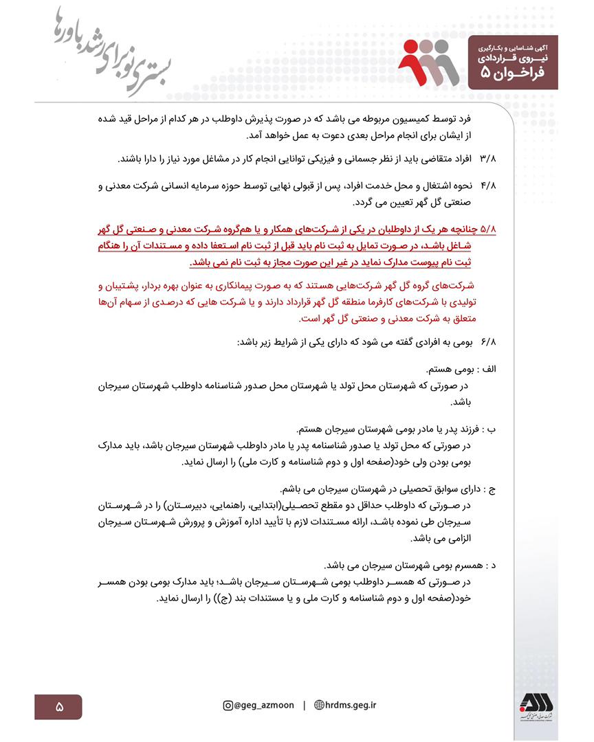 براساس این اطلاعیه، گلگهر در نظر دارد از طریق برگزاری آزمون کتبی، مصاحبه تخصصی و روانشناختی نسبت به شناسایی و جذب نیروهای واجد شرایط انسانی مورد نیاز خود اقدام کند.