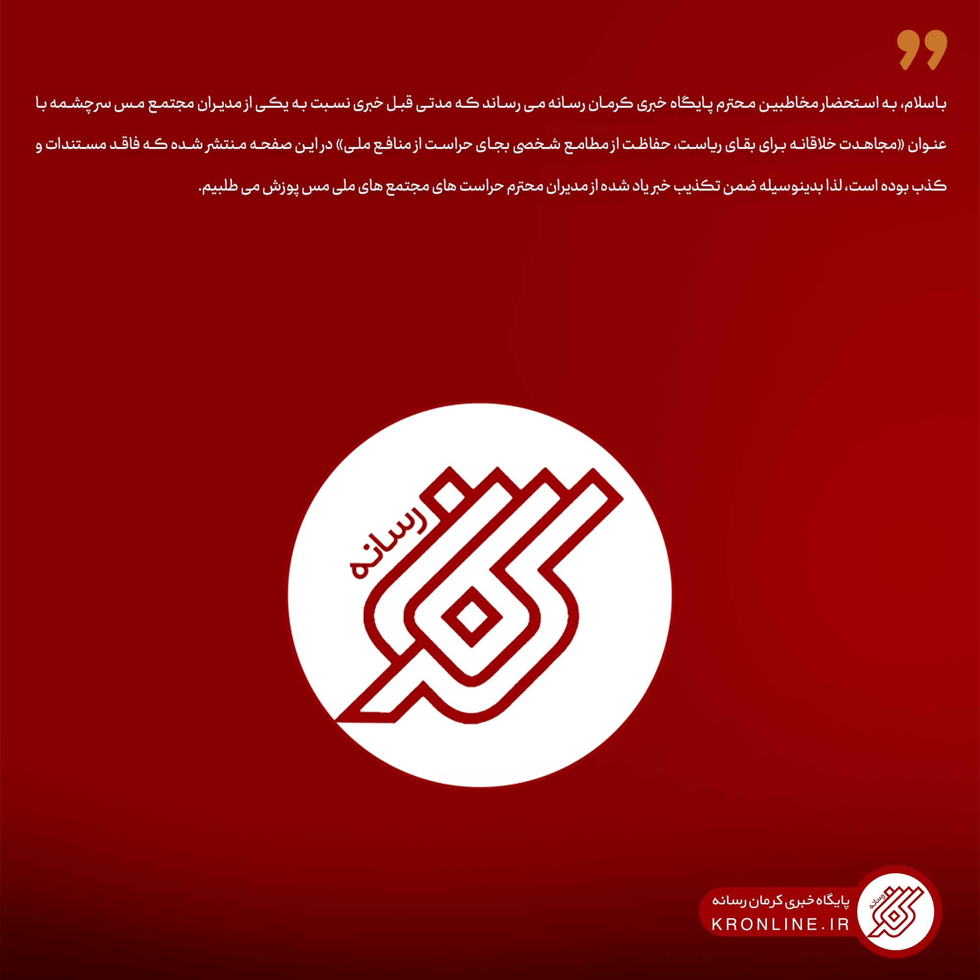 پایگاه خبری انقلابی و مردمی «کرمان رسانه» در توییتی نوشت: خرمی شاد در ۸ ماه گذشته کارنامه خوبی از خود ...